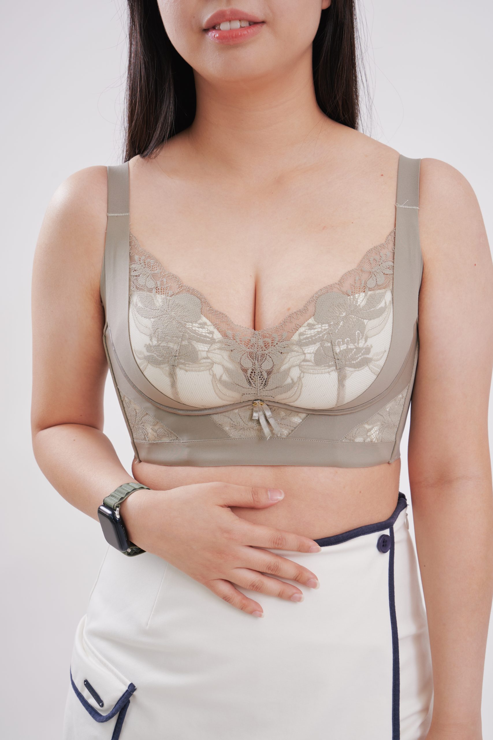 French Lace Tourmaline Massage Cup Reshaping Push Up Wireless Bra